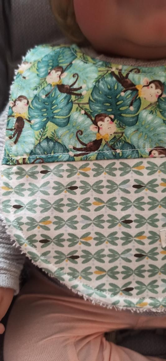 1/ face imprimée petits singes sur le haut et végétation sur le bas.