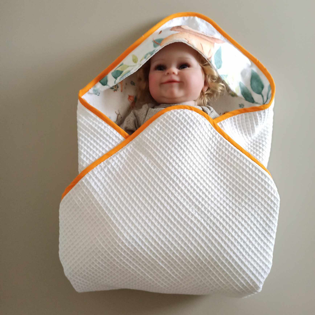 Cape de bain avec capuche en éponge de Bambou doublée d'un nid d'abeille (fort pouvoir absorbant) Blanc, mesurant 72 sur 72 cm.