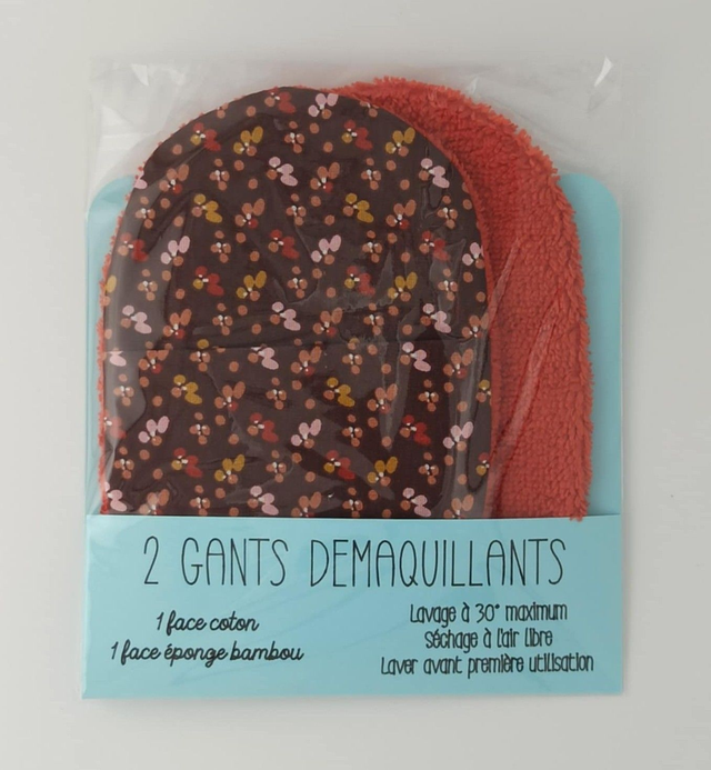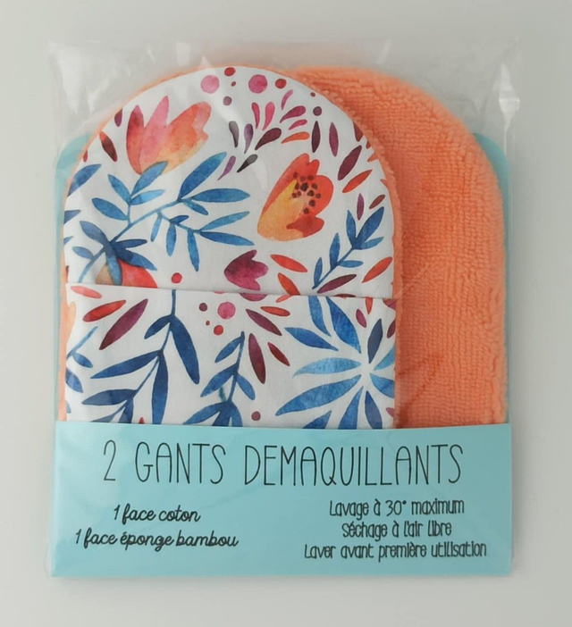 Lot de 2 débarbouillettes en coton et éponge de bambou.