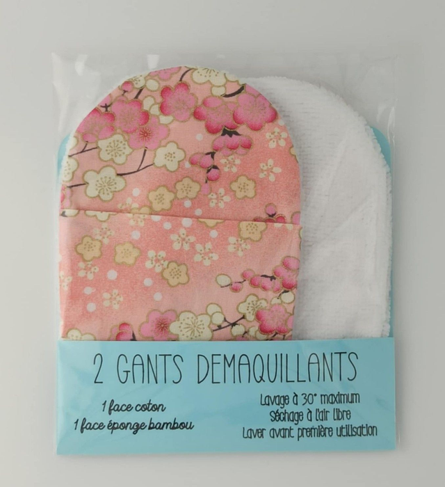 Coton rose imprimé fleurs et éponge de bambou blanc