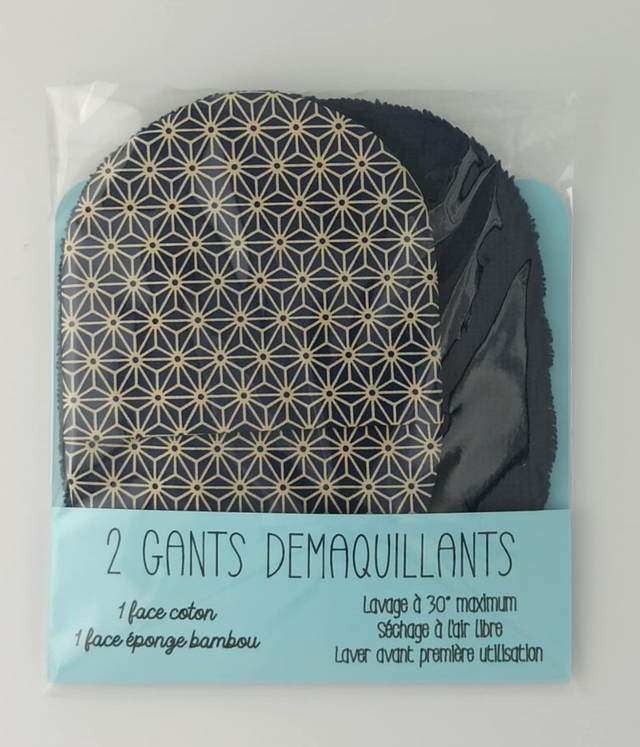 Coton bleu imprimé géomètrique et éponge de bambou bleu marine