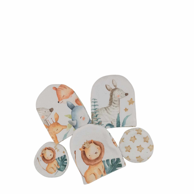 ce kit contient 3 mini gants, 7 lingettes carrées de 9 sur 9 cm, 2 lingettes rondes de 8 cm de diamètre en éponge de bambou et 2 serviettes de 28 cm sur 26 cm en éponge de bambou, doublées en nid d'abeille.