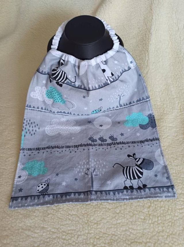 1 face imprimée animaux sur fond gris et 1 face microfibre absorbante gris.